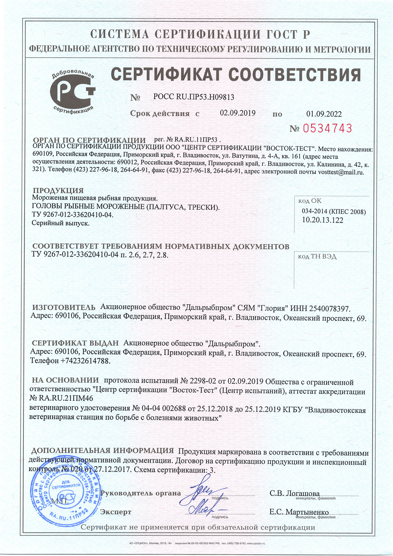 ГОЛОВЫ РЫБНЫЕ МОРОЖЕНЫЕ (ПАЛТУСА, ТРЕСКИ)