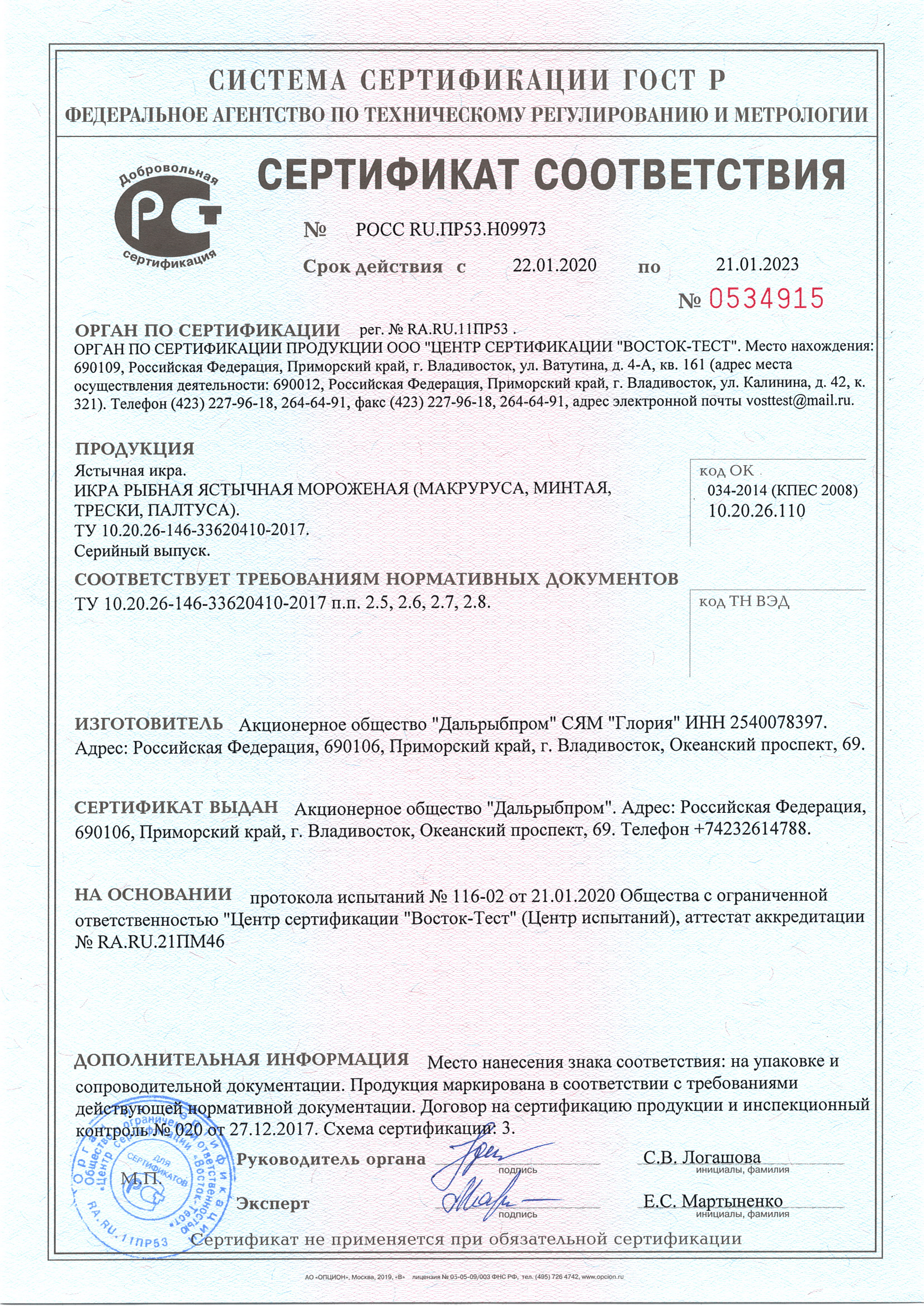 ИКРА РЫБНАЯ ЯСТЫЧНАЯ МОРОЖЕНАЯ (МАКРУРУСА, МИНТАЯ, ТРЕСКИ, ПАЛТУСА)