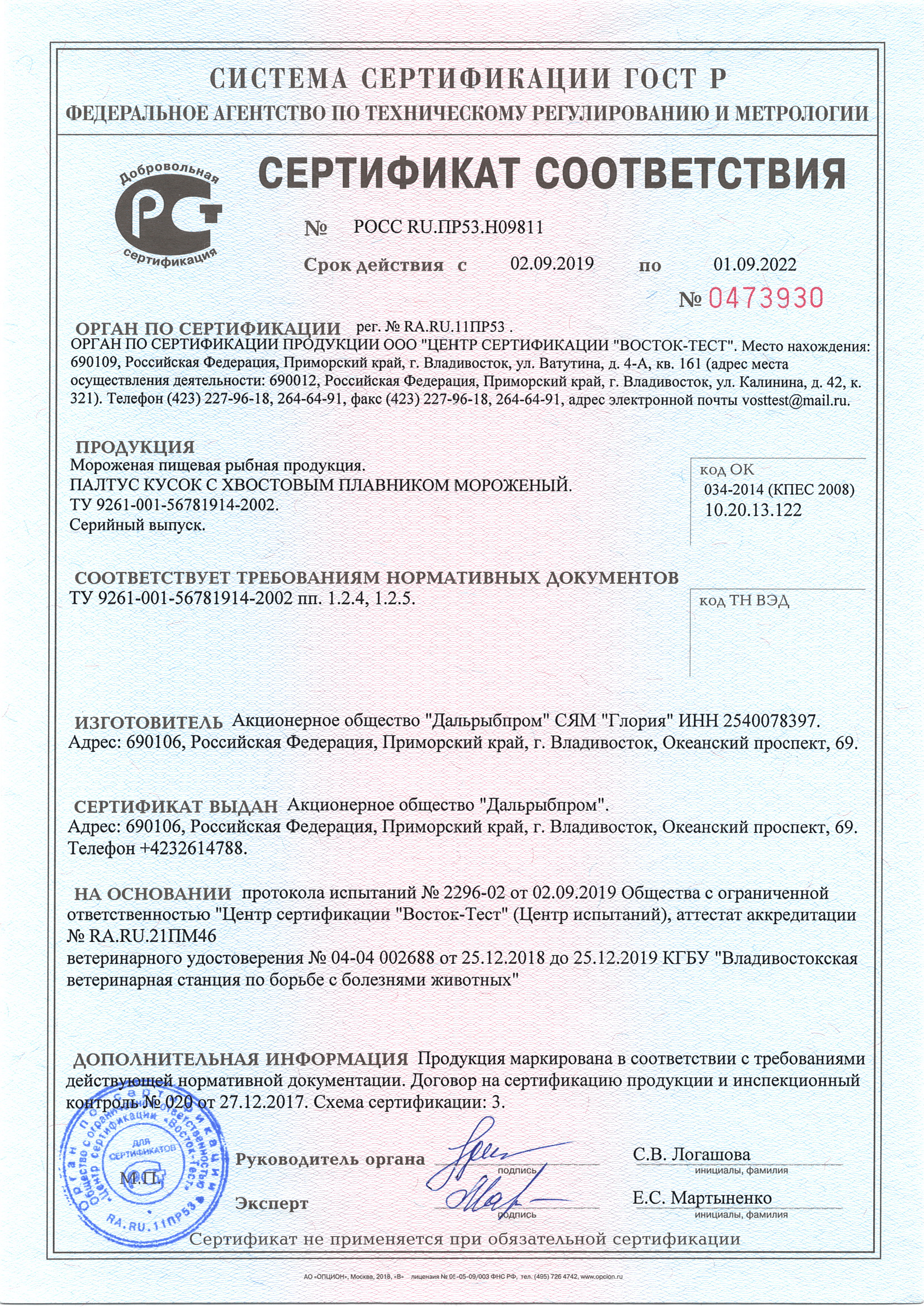 ПАЛТУС КУСОК С ХВОСТОВЫМ ПЛАВНИКОМ МОРОЖЕНЫЙ