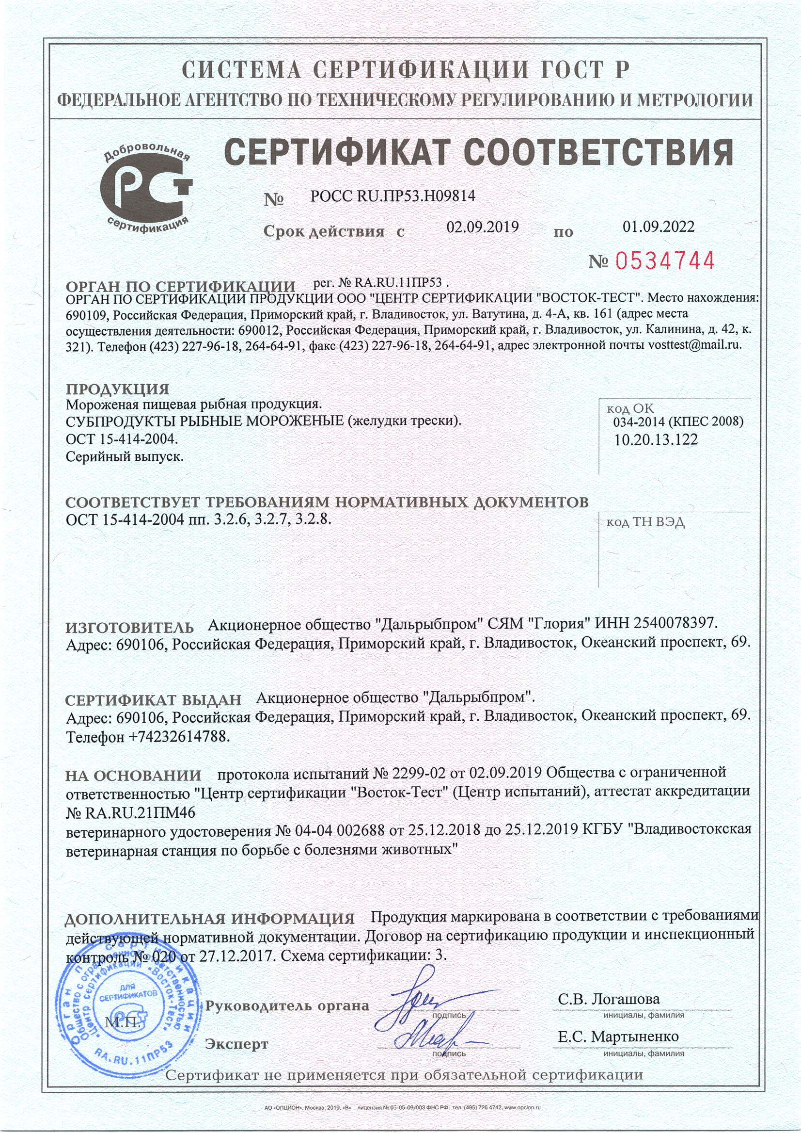 СУБПРОДУКТЫ РЫБНЫЕ МОРОЖЕНЫЕ (ЖЕЛУДКИ ТРЕСКИ)